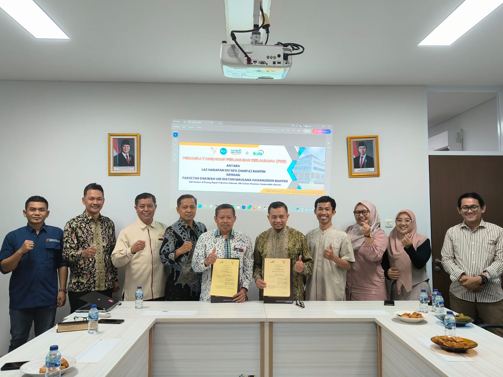 Penandatanganan berlangsung pada Rabu, 15 Oktober 2025 bertempat di ruang rapat Fakultas Dakwah lantai 2. Acara tersebut dihadiri oleh Dekan Fakultas Dakwah, [Dr. Endad Musaddad, M.A), dan Direktur LAZ Harfa Banten (Abdul Rafur, S.I.Kom., M.Si). Turut hadir jajaran pimpinan fakultas (wadek 2 dan 3) Kabag TU, PTP, dosen, serta perwakilan dari LAZ Harfa Banten.